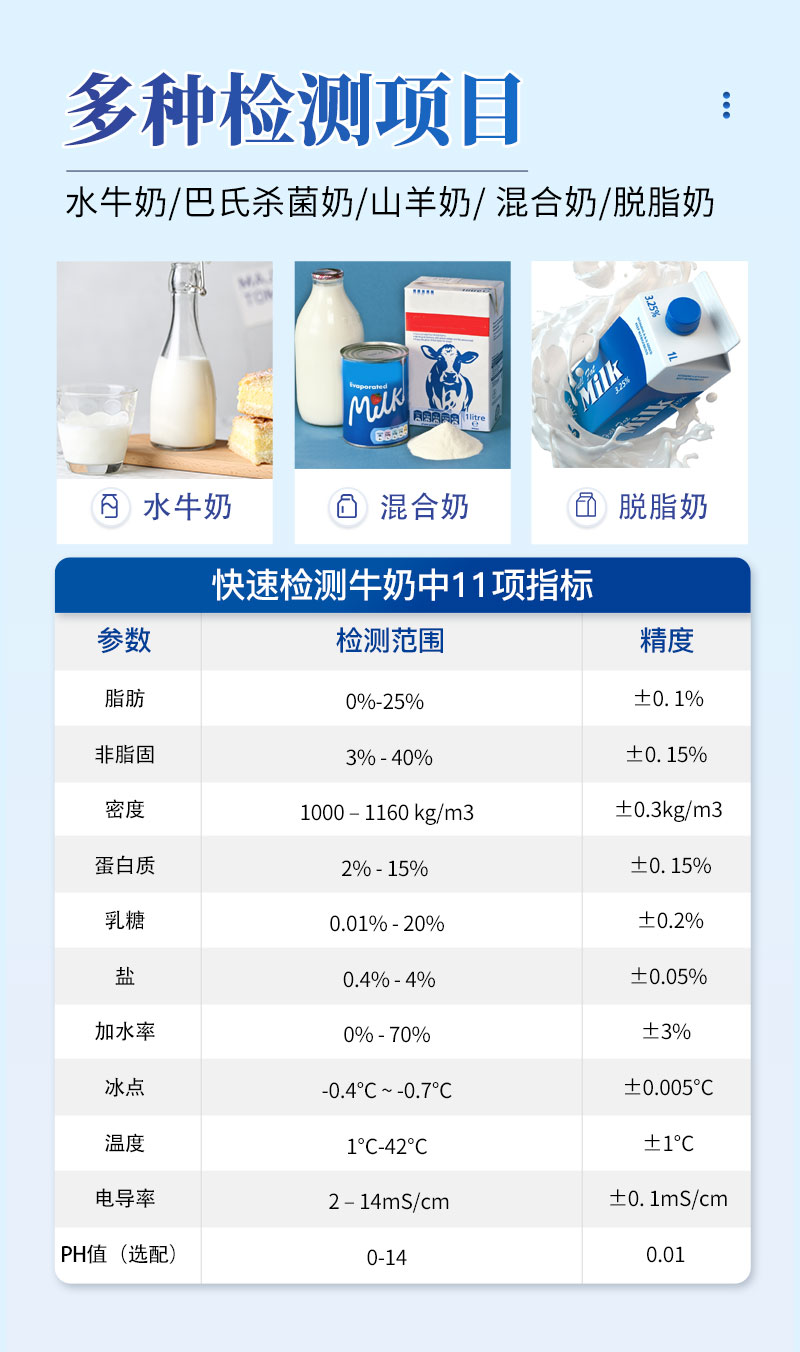 5、牛奶分析儀的標(biāo)準(zhǔn)校準(zhǔn)適用于牛奶,羊奶,UHT。